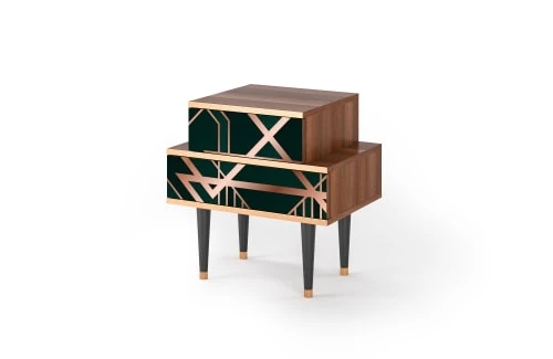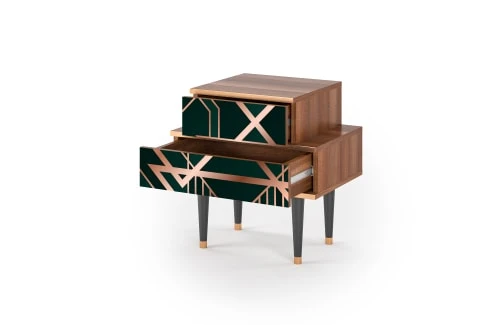 Pieds : Bois naturel avec extrémités en cuivre 25 cm de hauteur