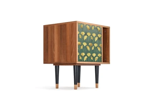 Pieds : Bois naturel avec extrémités en cuivre 25 cm de hauteur