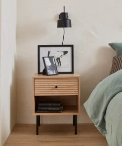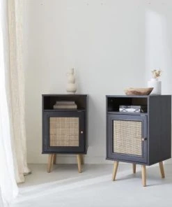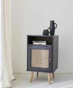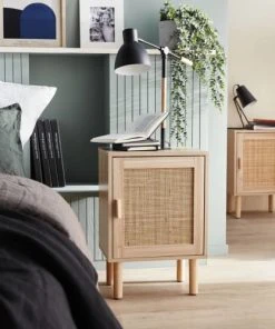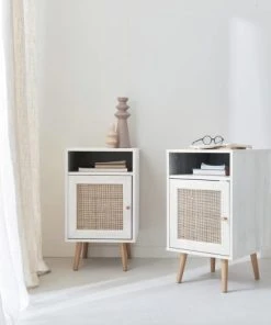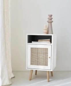 Alice’s Garden Table De Chevet Effet Bois Et Cannage, 1 Tiroir