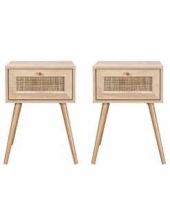 Alice’s Garden Lot De 2 Tables De Chevet En Cannage, Naturel