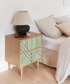 Alice’s Garden Table De Chevet Décor Bois Naturel Et Vert D’eau
