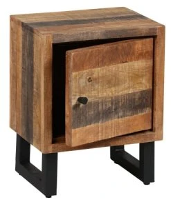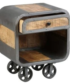 Altobuy LEONARD – Table De Chevet En Bois Massif Et Métal Gris