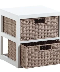 Aubry Gaspard Table De Chevet 2 Tiroirs En Bois Et Papier Cordé