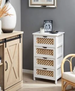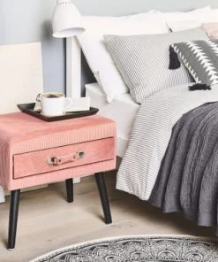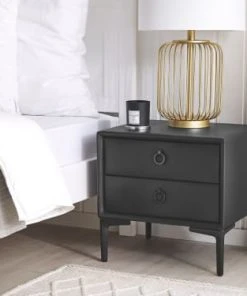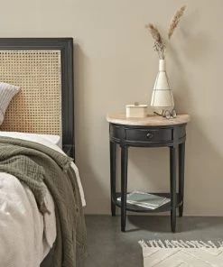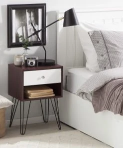 Beliani Table De Chevet Effet Bois Foncé Et Noire Avec Tiroir