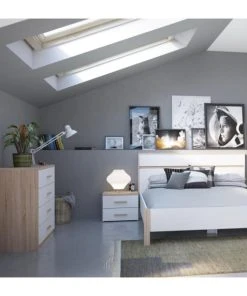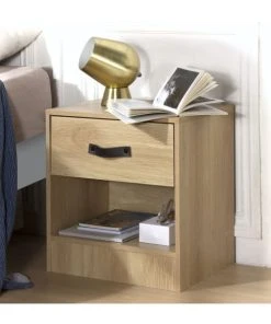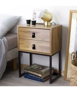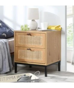 Casame Chevet 2 Tiroirs Aspect Chêne Avec Cannage Rotin – H51cm