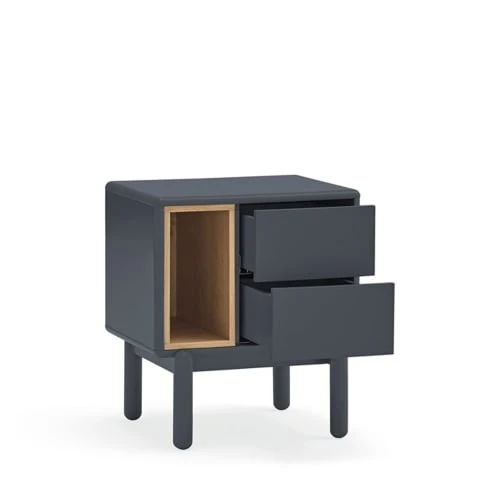 Angel Cerda Table De Chevet Blanc Brillant Deux Tiroirs Et Acier