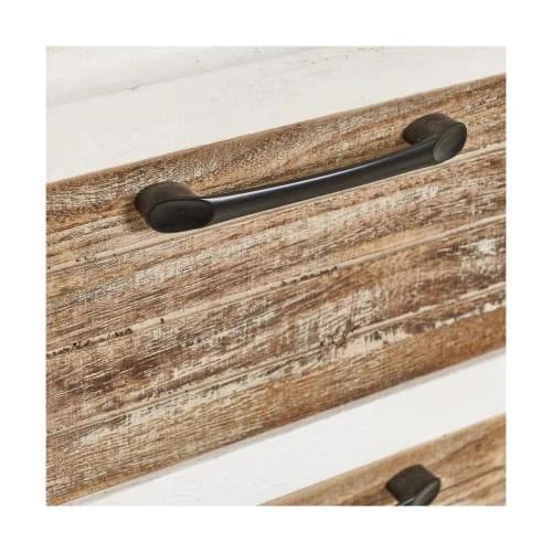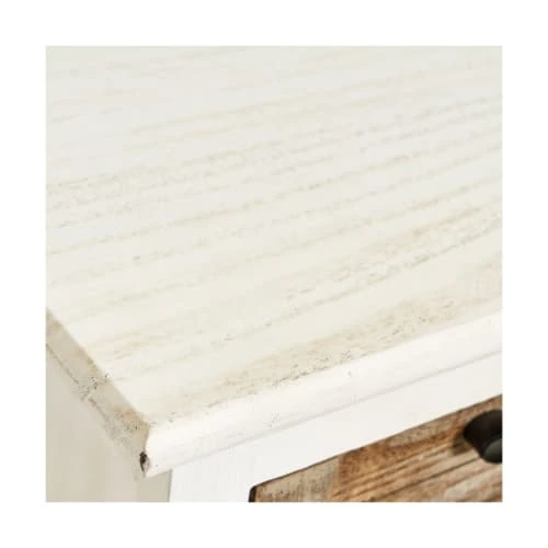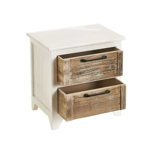 Unimasa Table De Chevet Bois Cérusé Blanc 2 Tiroirs – 40x29x42cm