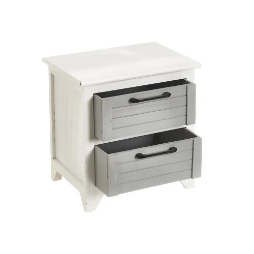 Unimasa Table De Chevet Bois Cérusé Blanc Et Gris 2 Tiroirs – 40×28.5×41.5cm