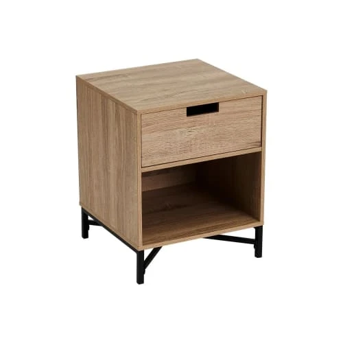 Unimasa Table De Chevet En Bois MDF Et Métal 1 Tiroir
