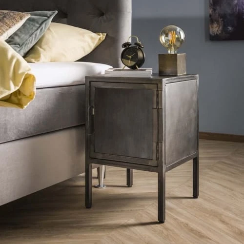 Angel Cerda Table De Chevet Blanc Brillant Deux Tiroirs Et Acier