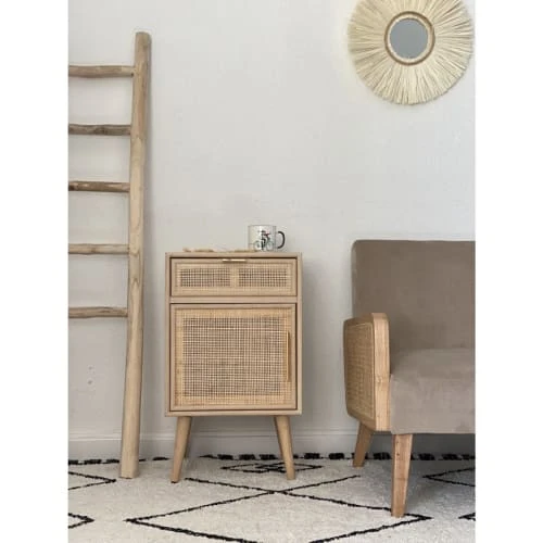 Wadiga Table De Chevet En Bois Massif D’acacia 1 Tiroir 1 Placard