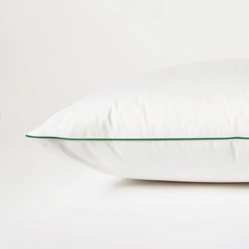 Une finition passepoil vert forêt vient sublimer l’oreiller.