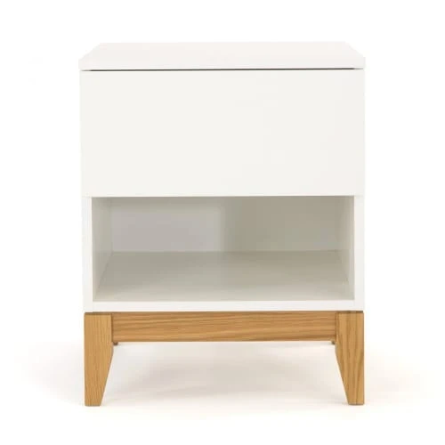 Angel Cerda Table De Chevet Blanc Brillant Deux Tiroirs Et Acier